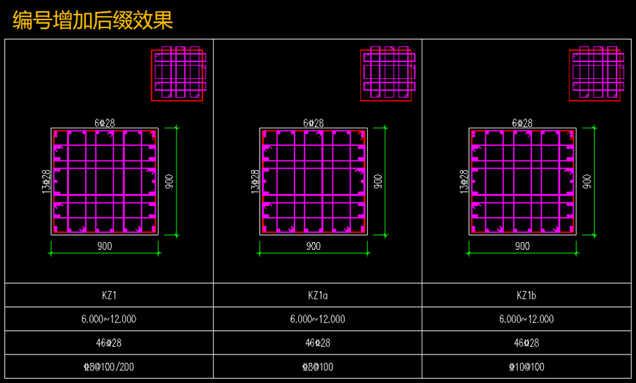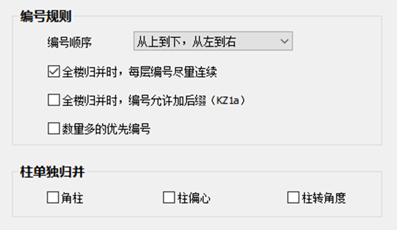结合设计师的绘图习惯,我们对编号规则也开放了多项参数,通过设置可以对编号增加后缀、对数量多的柱优先编号,还可以对角柱、偏心柱、带角度的柱单独进行归并。以保证提高成图效果,减少用户的后期修改工作。