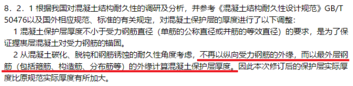 第三,按现行混凝土规范的要求,混凝土保护层厚度是从箍筋外皮开始算,不再是旧规范中的以纵筋外皮起算。所以在算箍筋长度时,边长不应是h-2c+dg,按现行规范应该是h-2c-dg。