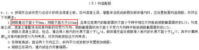 经这个板应该是单向板,计算值0没有错,但根据混凝土结构设计规范9.1.6条第1款,支座负筋有个构造配筋,所以软件就给了计算值,钢筋直径不宜小于8mm,间距不宜大于200mm,如图五所示: