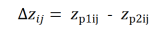某结构第i层一共有ni个柱子,分别为Si1、Si2、Si3、······、Sij、······、Sn、。柱子上端点为p1,下端点为p2,第j柱上端点水平位移为Dp1ij、竖向标高为Zp1ij,下端点水平位移为Dp2ij、竖向标高为Zp2ij,则第i层的第j个柱子上下端点的位移角按如下方式进行计算:
