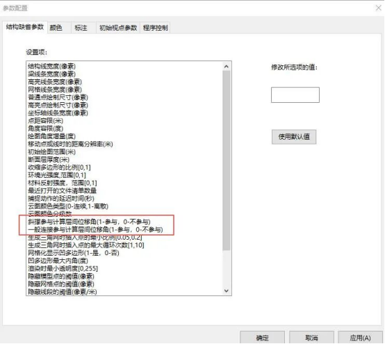 软件默认不统计斜撑的构件位移角,如果想要统计斜撑的构件位移角,可以通过软件顶部菜单栏 → 选项 → 系统参数来设置。如下图: