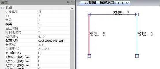如图3所示,如果想将红色框中的两根柱子构件位移角统计到目标楼层(例如,统计到第3层层间位移角),需同时满足以下3个条件: