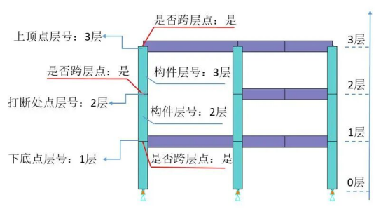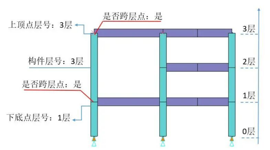 ②构件上下两端的节点层号是否正确、是否是跨层点;