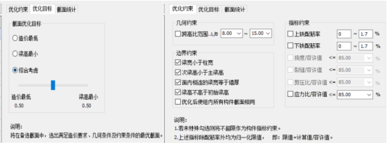 各设计组及备选截面创建成功以后,需要确定优选的目标及相应的约束条件,以实现在设定的约束条件内达到最优目标。