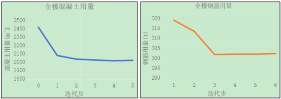 本工程经智能截面优选后,被优选的构件造价从22.3万元,降低为19.5万元,优化比例为12.6%,由于仅优化了主要次梁,次梁占结构总质量比例较小,全楼总造价仅降低1.4%。计算后整体指标仍然通过。