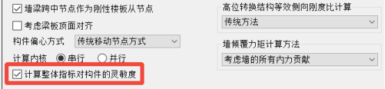 参数设置时,仅需勾选satwe参数定义“总信息”-“计算整体指标对构件的灵敏度”,计算后,灵敏度分析结果如下: