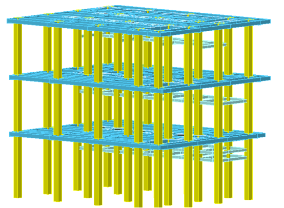 本工业项目为开敞式混凝土框架厂房,地上3层,层高7.5m,每一层均有局部夹层,建筑高度约23m,抗震设防烈度7度,设计基本地震加速度0.15g,设计地震分组第3组,场地类别为Ⅲ类。本项目处于调整优化阶段,由于设备荷载较多并且荷载较大,所以初始模型柱截面均采用了750*750,梁截面X向主梁400*700、Y向主梁400*800,部分设备支座处布置八字梁,设备穿楼板处开洞。构件混凝土等级均为C35,钢筋采用HRB400级钢筋。