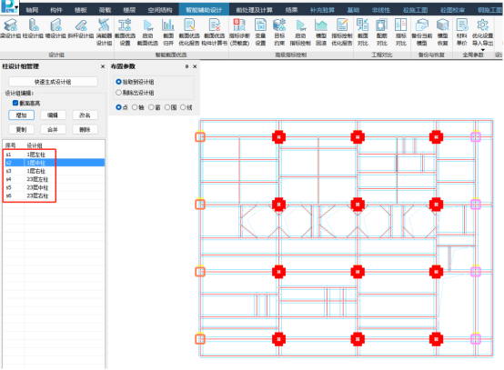 本项目平面、立面相对比较规整,但是设备荷载较多并且荷载较大,柱截面简单的调小并不能同时满足降造价和优化指标的要求,使用PKPM-AID 1.0调整承载力和指标需要反复调整来满足目标要求。为了提高设计效率和质量,快速找到最优的模型方案,本次应用了最新发布的 PKPM-AID 2.0来进行调整。