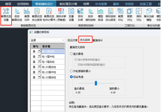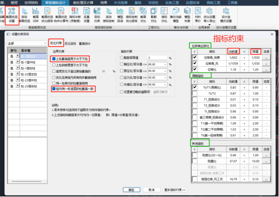 简单概括就是“构件+指标”同步双控,截面优化同时保证指标满足。