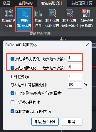 4)启动截面优选。承载力优化和指标优化同步进行(见图八)。