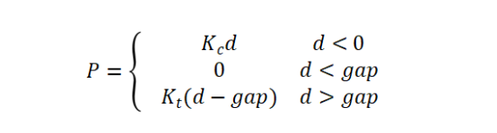 程序中也提供了抗拉摩擦摆隔震支座(摩擦摆支座(T/C)和摩擦摆支座(T/C)2),前者是上下两个滑动面平行设置,后者是上下两个滑动面对称设置。这是一种可以受拉的摩擦摆支座,受拉时上面的滑动面开始发挥作用。当受拉变形小于间隙时,拉力为0。受拉变形超过拉伸间隙后,支座受拉。轴力与轴向变形关系如下: